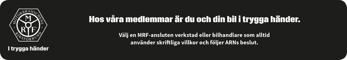 Vi är en MRF-ansluten verkstad som alltid använder skriftliga villkor och följer ARNs beslut.